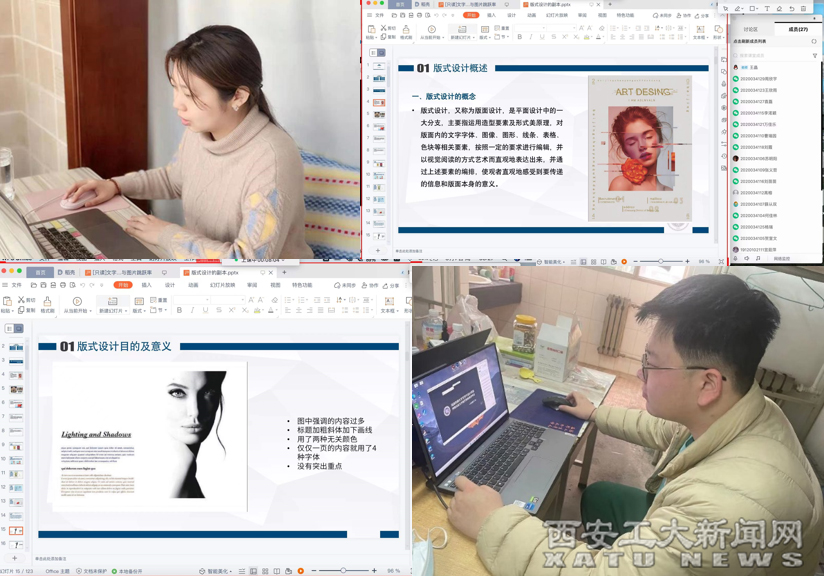艺术与传媒学院王晶老师在视觉传达设计专业《版式设计》的线上教学中,采用“平台建课+直播授课”相结合的教学模式。课前准备工作中,在学习平台上建设了优质慕课视频资源。线上授课过程中教学流程规范,力求网络教学务实高效。课前提前发布学习任务,学生提前自主学习课程内容;开课前上传本次课的学习要求,明确学习流程和学习目标,辅以问卷调查、教学案例、讨论等导入课程,激发学生对本次课的学习兴趣;课中通过连麦、讨论区等与学生积极互动,时刻让学生保持学习状态,课后辅导学生巩固课程知识,布置话题讨论和随堂测试,并及时批改评价,检查当天学生课程知识掌握情况。通过反复强化突破重点、难点,设计多样化的课堂教学活动,让学生保持新鲜感和学习兴趣。