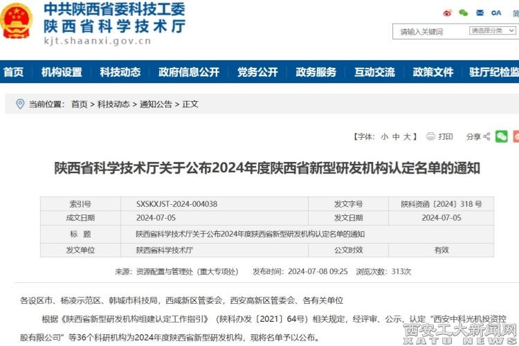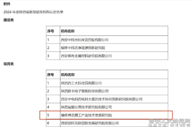 (本网讯)近日,陕西省科技厅网站正式公布了2024年度陕西省新型研发机构认定名单,经依托单位申报、榆林市科技局推荐、专家评审、现场考察及公示,榆林博艺精工产业技术发展研究院被正式列入陕西省新型研发机构名单。