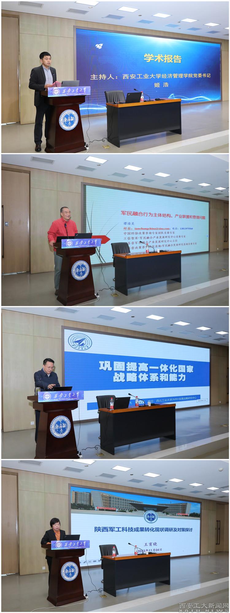 论坛第二阶段进行学术报告交流,由经济管理学院党委书记姬浩主持。南京航空航天大学谭清美教授、西北工业大学孙晔飞教授和beat365王育晓教授分别以《军民融合行为主体结构、产业联盟和管理问题》《巩固提高一体化国家战略体系和能力》《陕西军工科技成果转化现状调研及对策研讨》为主题作了精彩纷呈的学术报告。