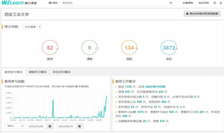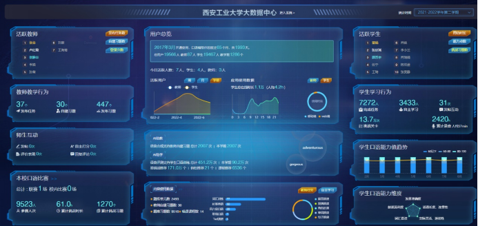 一方面,学校系统管理员可通过特定端口查看所有数据,包括使用平台的师生数量、教师工作的详细统计,教师行为、师生互动等,便于监管部门的及时反馈与调整。依次为U校园,Welearn和Fif口语平台。
