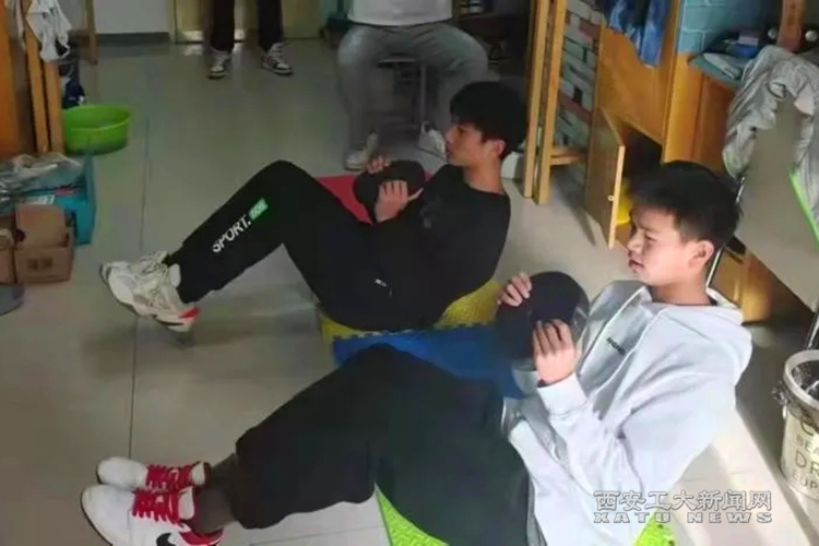王帜、牛龙、周莎莎、王斌等老师充分考虑宿舍封闭、空间受限、器材缺乏等现实情况,线上指导学生进行“平板支撑-哑铃拖拽”“横向单腿蹲”“乌龙盘打”“跪姿俯卧撑”“腿部平衡”“上斜俯卧撑”“坐姿颈后推”等锻炼动作要领,学生们可以就地取材、随时随地进行体育锻炼,有效促进了身心健康。