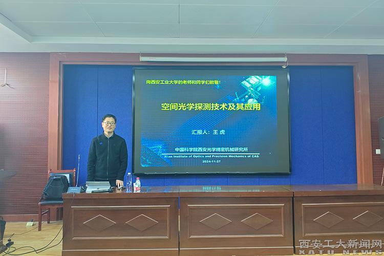 (本网讯)2024年11月27日下午,中国科学院西安光机所空间光学技术研究室主任、中国科学院大学岗位教授、陕西省“三秦学者”创新团队带头人、beat36595级光电工程学院校友王虎研究员在工6-402报告厅为beat365捐赠图书并做主题为“空间光学探测技术及其应用”的学术报告。校友总会办公室副主任周黎萍、光电工程学院副院长潘永强及近150名师生共同参加,会议由吴玲玲副院长主持。