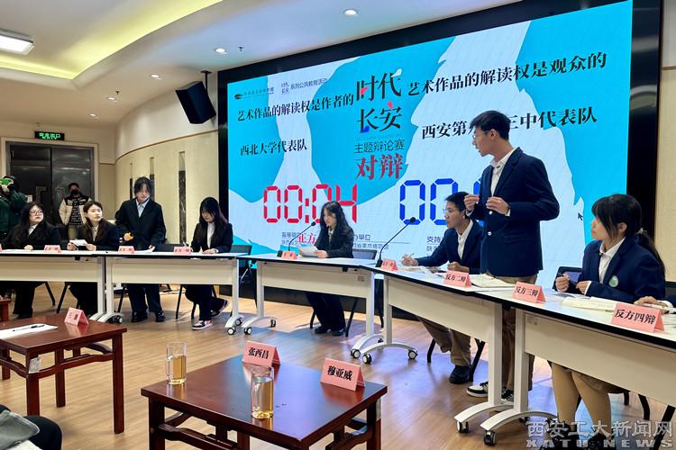 学生通过认真观展与参与体验,深刻领会画家笔触和时代背景对人物精神风貌的塑造,领略陕西当代中国人物画的风采与魅力。随后,进入学术报告厅观看“AI绘画是不是艺术”、“艺术作品的解读权是作者还是观众的”两场艺术类主题辩论赛,并与现场学者、艺术家互动。