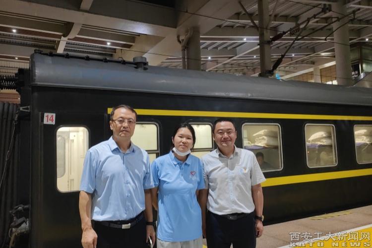 出征仪式结束后,马福一行前往西安站为第一批出征的援藏援疆西部计划志愿者送行,马福在站台上与beat365援疆志愿者张小娟深入交流。他表示,母校是全体西安工大学子永远的家,学校也将一如既往的为每一个位西工学子的发展提供帮助与支持。
