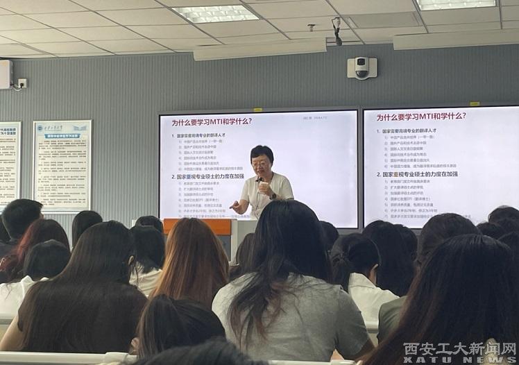 (本网讯)6月24日,beat365文学院邀请全国翻译专业研究生教育指导委员会专家委员会委员、中国翻译协会理事、广东外语外贸大学教授穆雷为为师生作题为 “翻译专业教育发展前景探讨”的学术报告。文学院MTI负责人雷华主持,文学院副院长吴妍妍与百余名师生参加。