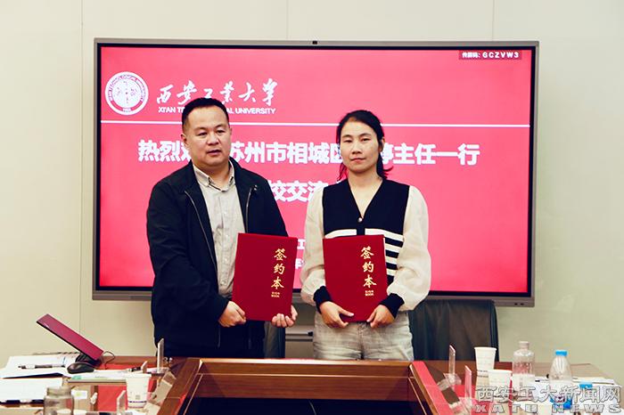 随后,双方在图书馆第二会议室召开了座谈。会上,通过观看校地宣传片、双方详细介绍,了解了校地基本情况、发展历程、企业引进人才政策、毕业生专业及就业等情况。苏州优力科瑞半导体科技有限公司、西诺威阀门控制(苏州)有限公司等企业代表介绍了各自企业基本情况、薪资福利、专业人才需求等,特别是对机械类、材料类、计算机类、电子信息类、经管类等专业人才需求量较大,并与参会的学院就毕业生情况进行了深入交流。最后,张文鹏代表学校与俞婷签署了《校地合作共建框架协议书》,校地双方将在人才培养、实习培训、就业见习等方面开展深度合作。
