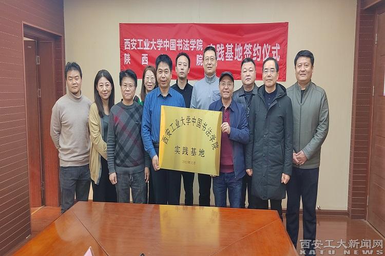 最后,在双方共同见证下,中国书法学院院长于唯德和陕西书学院院长杨小琪签订了实践基地协议书,副校长张群为其授牌。
