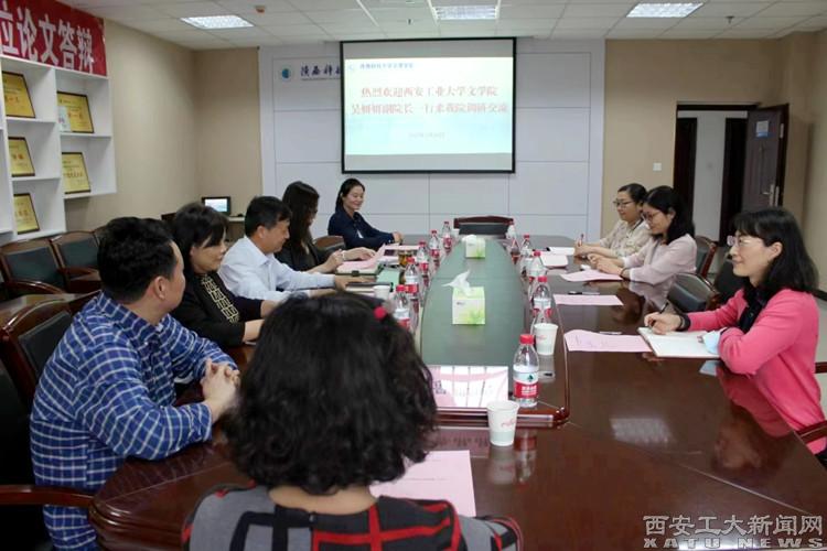 (本网讯)近日,beat365文学院副院长吴妍妍一行赴陕西科技大学文理学院开展MTI培养模式调研,与陕西科技大学文理学院院长刘建科、副院长李稳敏以及MTI专业骨干教师就培养模式和人才培养特色等问题进行了深入交流。