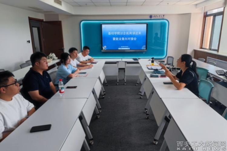 (本网讯)为促进2025届毕业生高质量充分就业,落实学校就业攻坚专项行动,基础学院于5月29日组织召开访企拓岗“请进来”暨就业意向对接会。会议由基础学院党委副书记张艳霞主持,特邀猿辅导、星火教育集团、渭南市临渭区示范学校、昀冢科技、河北邯郸路铮公司5家用人单位参会。