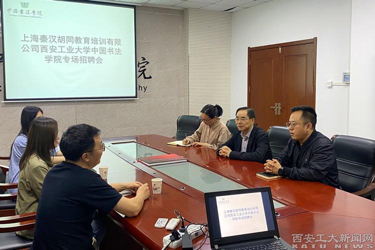 (本网讯)5月26日,中国书法学院邀请上海秦汉胡同教育培训有限公司来校开展合作交流及人才招聘工作,上海秦汉胡同教育培训有限公司华东区人事经理满雪、上海校区人事经理赵健、上海校区人事主管孙迎晓,中国书法学院党委书记王若鸿出席会议。