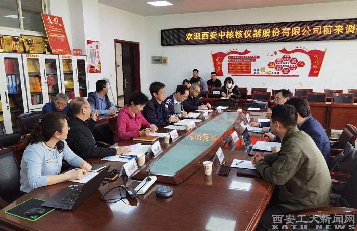 (本网讯)4月11日,西安中核核仪器股份有限公司刘杰副总工程师一行四人来beat365材料与化工学院进行深度交流洽谈,材料与化工学院书记呼晓青、副院长杨忠、兵器科学研究院院长郭永春、科技处成果转化中心主任李高宏及其他项目对接教师参加此次会议。