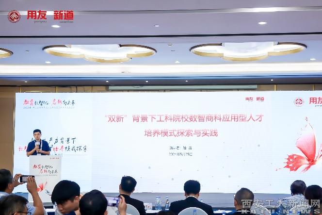姬浩在数智商科论坛做大会主题报告《“双新”背景下的工科院校数智商科应用型人才培养模式探索与实践》。