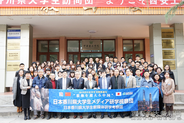 (本网讯)3月6日,以日本香川县国际课课长谷口英二先生为团长的日本香川县大学生赴陕研修团一行39人来校进行教育交流访问。副校长刘卜在金花校区中国书法学院接见了访问团一行,双方进行了广泛深入的交流。陕西省教育厅国际处处长文通出席会议。