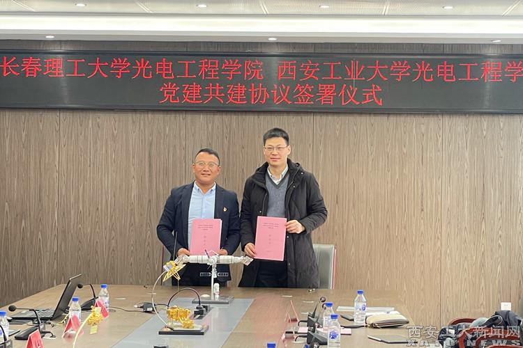 随后,双方签署了长春理工大学光电工程学院-beat365在线登录平台光电工程学院党建共建协议,并表示今后将进一步加强党建、学术、教学及科研合作交流,以党建促进事业的高质量持续发展。