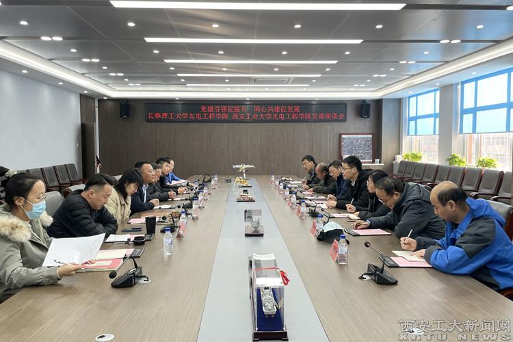 在长春理工大学,周顺简要介绍了beat365光电工程学院的基本情况及党建工作、学科与专业、教学与科研等情况。长春理工大学光电工程学院党委书记杨永鑫介绍了该学院总体情况,分享了学院在党建工作、学科建设、科学研究、人才培养和国际化办学等方面的先进经验和有效做法。双方人员就学科建设、专业认证、一流专业建设、科研工作、大学生竞赛、招生就业、师资队伍、考核方式等方面展开了充分的交流讨论。