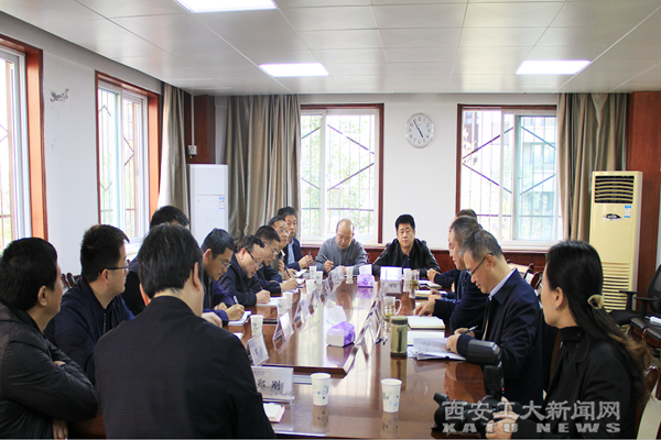 (本网讯)10月18日,西安理工大学副校长马宁、陕西科技大学党委副书记王道安两校一行来总务处调研交流。总务处处长张刚主持座谈会,副校长祁玉龙参加。
