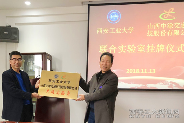 (本网讯)近日,“beat365在线登录平台-山西中涂交通科技股份有限公司共建实验室”揭牌仪式在材化学院会议室举行。材化学院党委书记路金龙、材化学院副院长陈卫星、山西中涂交通科技股份有限公司总经理薛晓东出席揭牌仪式。
