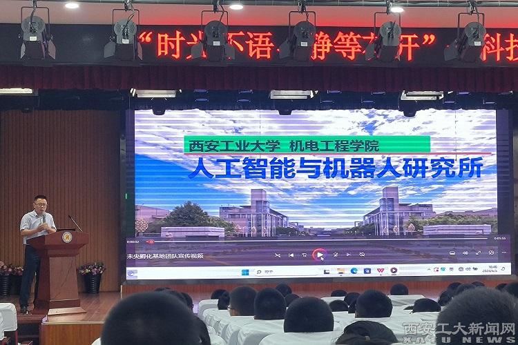 机电工程学院人工智能与机器人研究团队王沁副教授为同学们带来《时光不语静等花开》的专题科技讲座。他通过列举我们生活中常见的无人机控制、汽车自动驾驶、AI艺术创作等人工智能的应用场景,以生动形象、有趣活泼的游戏方式,让学生真切地感受到人工智能的发展,认识到人工智能目前在很多领域已经深深影响和改变着我们的生活。同时,他还介绍了人工智能未来在科学、医学、金融、游戏、教育等多个领域的发展前景。