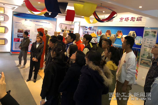材化学院师生一行观看了纺织研究院宣传片、参观了研究院展室,对企业发展历史、特色优势等进行了全面了解。