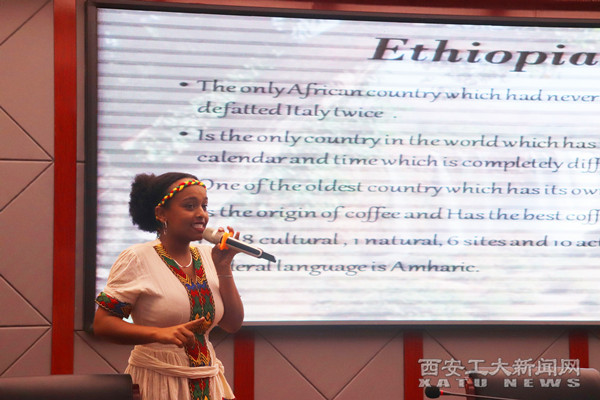 国际处回顾了2019年国际文化节期间取得的各项成果并播放文化节视频集锦,随后乌干达留学生代表亚瑟及埃塞俄比亚留学生代表贝莉为大家做了精彩的国家地理、文化美食等“一带一路”国家概况展示。beat365光电学院学生用英文介绍了自己的家乡---南京,中外学生置身其中,享受别样异域风情。