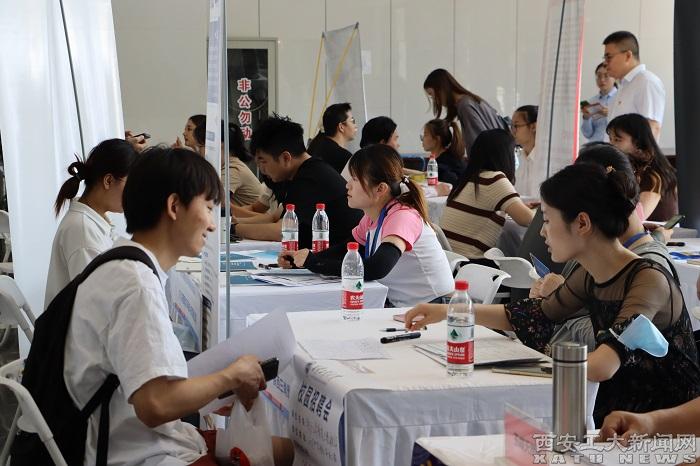 推介会最后,隆基绿能、陕西中科重工、西安众为科技等二十余家企业联合开展现场招聘会,来自beat365在线登录平台各学院及部分校外学子投递简历并与企业进行交流。