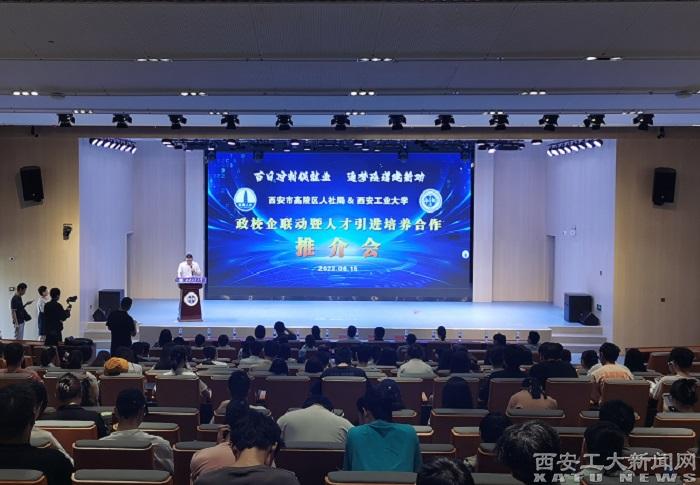 程建虎在致辞中回溯了高陵的历史人文,介绍了beat365在线登录平台及文学院的发展现状,指出学校与高陵区隔河相望,比邻而居,有着天然的渊源和深厚的缘分,他号召西工学子在“北跨”的激昂号角中,选择高陵区,建功新时时代。接着屈健康做人才推介专题宣讲,他指出高陵是历史文化之城、“北跨”发展之城、千亿元工业之城和人才汇聚之城,介绍了“全职引进”、“柔性引进”和“本地培养”等人才政策细则,并表示人社局组织的22家企业的近三百个岗位正虚位以待。随后刘晶宣讲招才引智相关政策,她从项目支持、人才引进、资金支持和优化服务四个方面介绍了高陵区在实施“西安英才计划”中的有力举措。全球规模最大的太阳能科技公司隆基绿能贺经理代表企业发言,她主要介绍了隆基的人才培养规划和校招训练营,全球领先的技术、优越的工作环境、巨大的上升空间和充满朝气的企业文化让现场学子跃跃欲试。