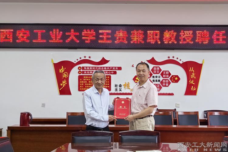 刘卜代表学校为王贵颁发了聘书,并佩戴校徽。