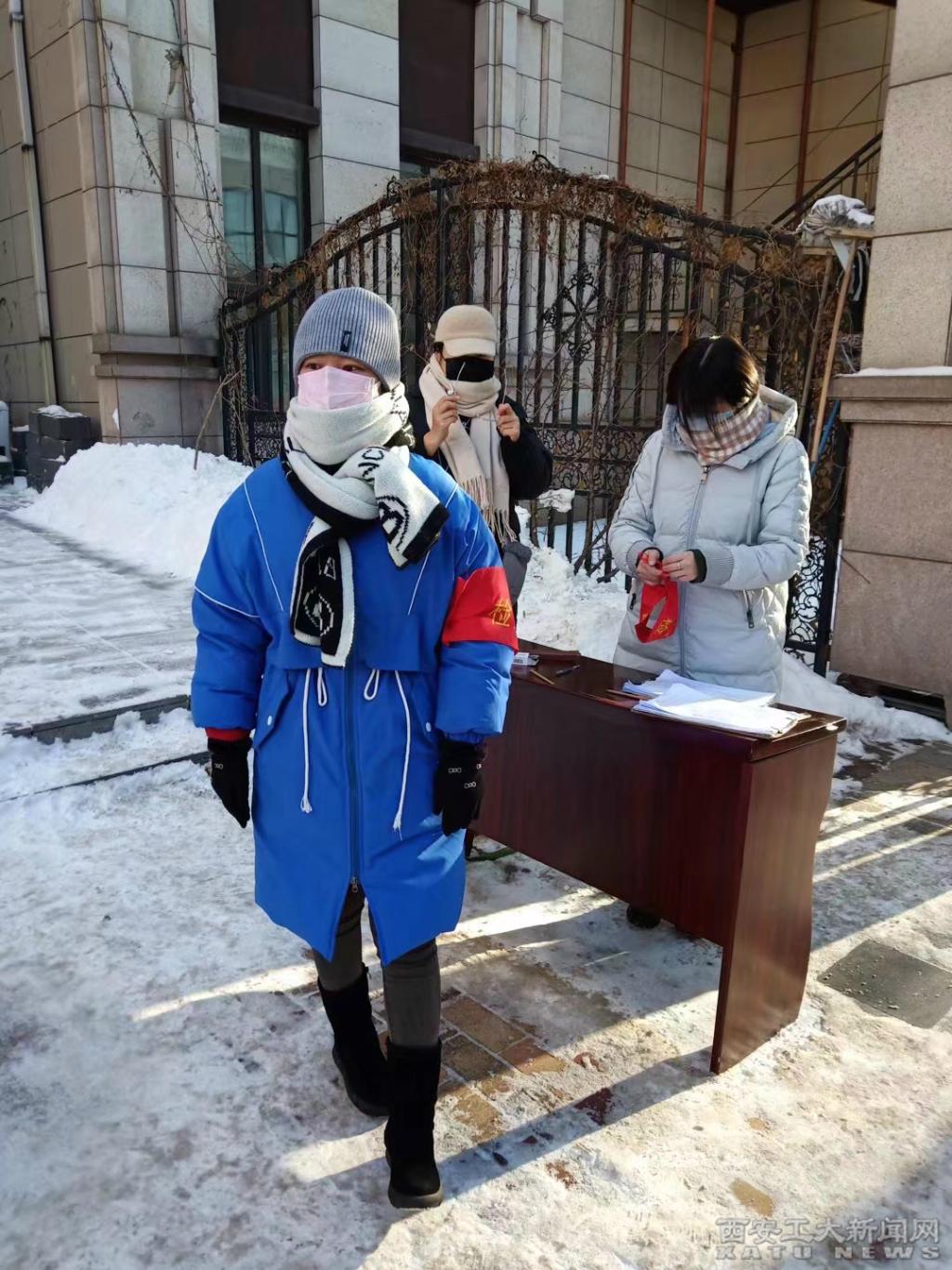 疫情刚刚来临,仲姝锜就向家乡吉林省舒兰市滨河街道办事处申请了疫情社区防控的志愿服务工作。疫情期间,每个小区开始实行封闭式管理,每家每户都有自己的通行证,每天每家每户只能一人出行采购需携带通行证。她主要是进行通行证的检查工作,两三人轮班一次,一次八小时。