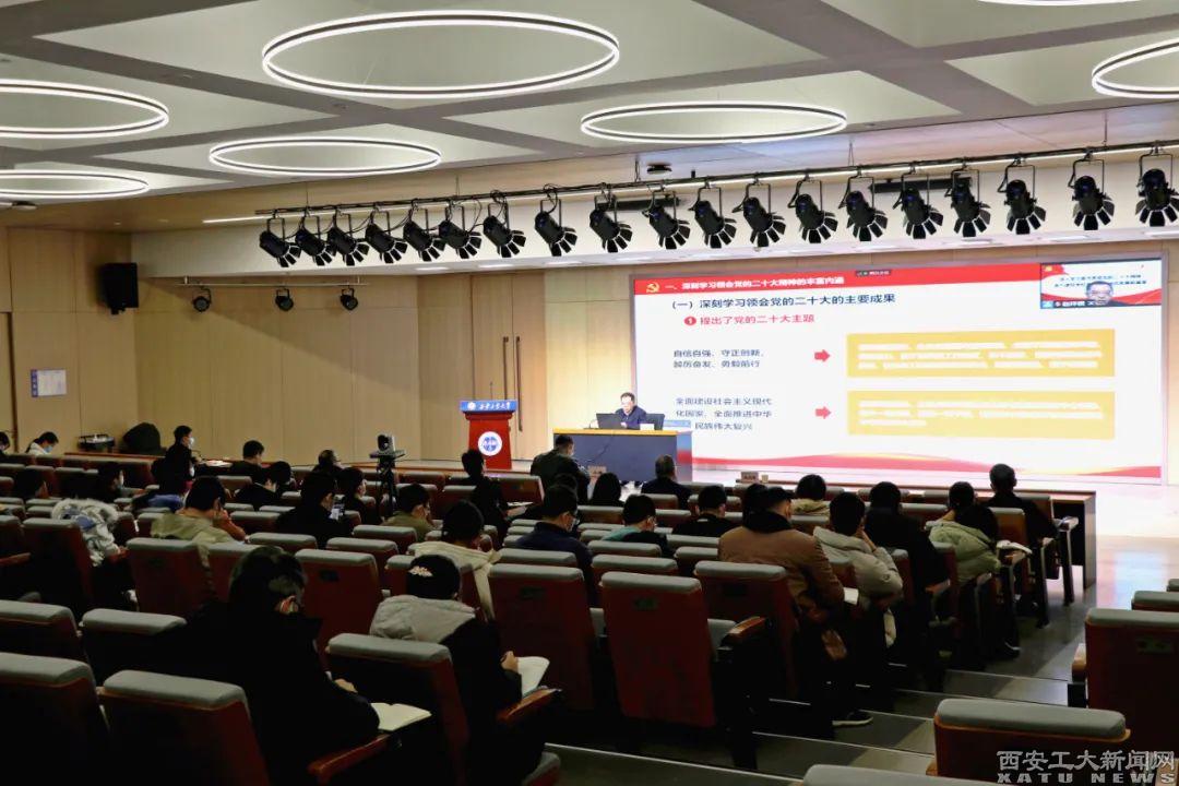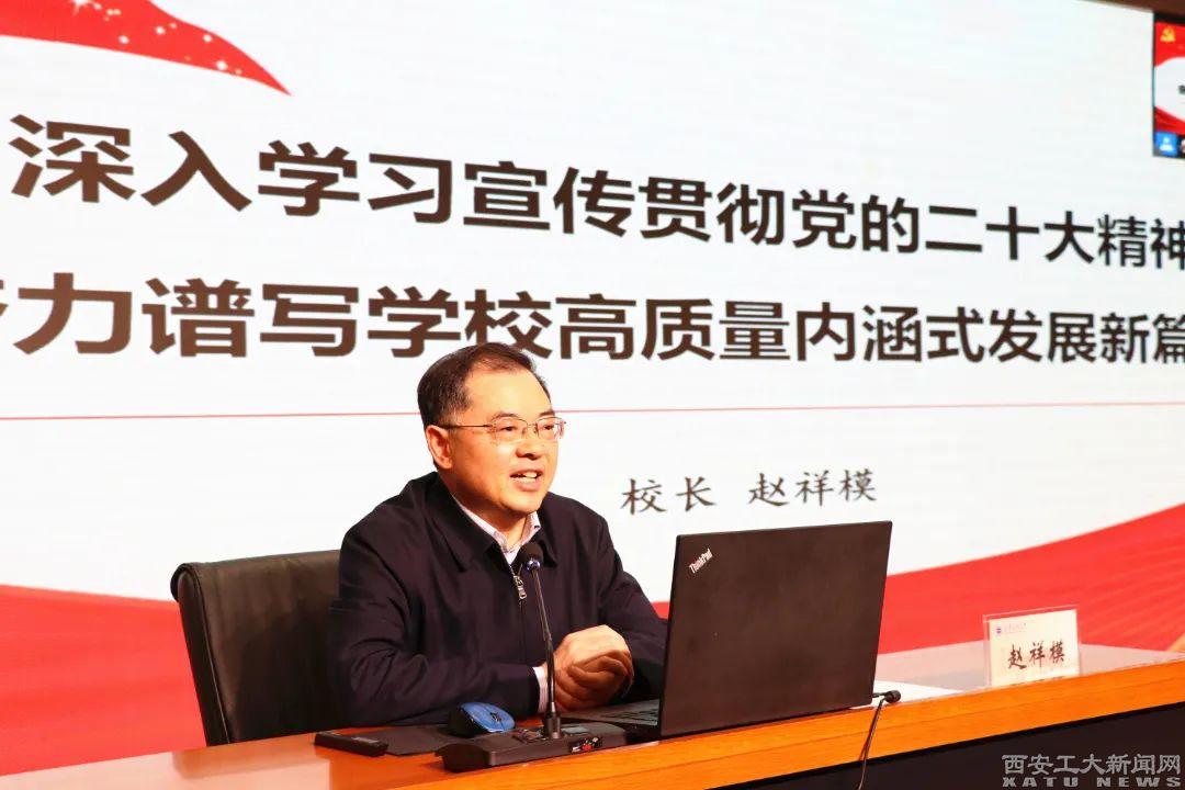 12月7日下午,校长赵祥模为机关党委所属党支部书记、各教学单位教工党支部书记和全体辅导员宣讲党的二十大精神。宣讲会采取“主会场+线上分会场”视频会议形式召开。