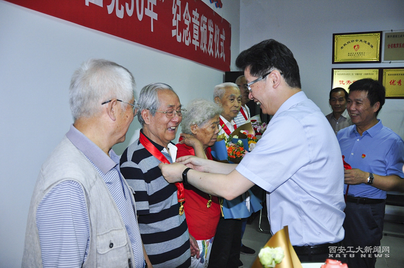刘卫国代表学校党委向获得纪念章的老党员表示崇高的敬意和亲切的慰问。他首先介绍了学校获得“光荣在党50年”纪念章的总体情况,指出:颁发“光荣在党50年”纪念章是以习近平同志为核心的党中央对老党员的关怀和肯定,获此殊荣的老党员同志是党和国家的宝贵财富,也是对老党员半个世纪来对党忠诚、矢志不渝、担当奉献的最高褒奖;获此殊荣的老党员同志是全校师生的学习榜样。全校上下要结合正在开展的党史学习教育,大力弘扬老党员初心不改的优秀品质和红心向党的优良作风,赓续学校“兵工传统”,续写新时代“兵工精神”,为学校新时期发展再做贡献。