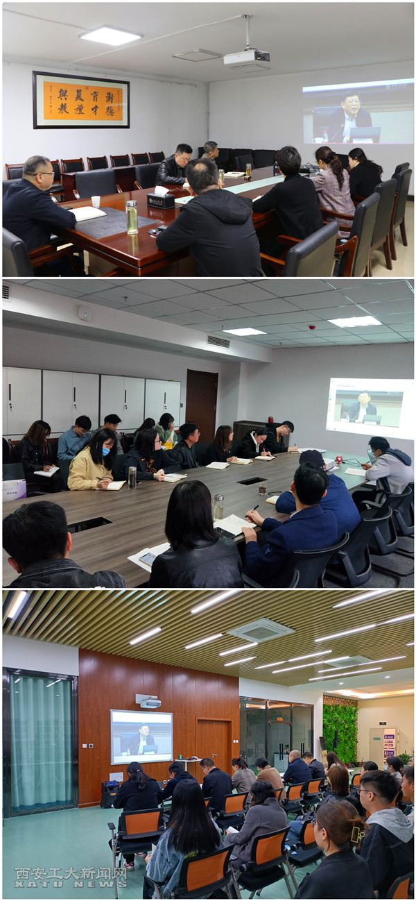 学校组织部、宣传部、统战部、学工部、马克思主义学院负责同志,思政课教师、辅导员和学生代表收看报告会。