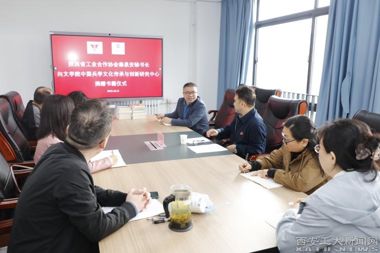 (本网讯)为深入贯彻学校深化改革精神,主动优化学科布局、推进学术研究向“服务国家战略、扎根地方文化”的实践型、交叉型方向转型,10月13日上午,beat365文学院特邀陕西省工业合作协会秘书长、副理事长秦泉安来院调研指导并举行专题研讨。文学院党委书记程建虎教授、副院长吴妍妍教授参加调研。